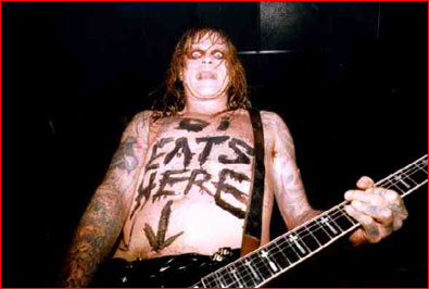Le moins que l’on puisse dire sur Chris Holmes est qu’il est assez spécial ! Déjà, sa mère est une Hell’s Angel, ça prédestine un peu quand même ! Chris serait paraît-il capable d’assommer un crocodile à mains nues ! Ce qui est possible quand on sait que dès 7 ans, il se fait virer de son école pour violence forcenée, et qu’il a passé 4 tables à travers la fenêtre d’une boite de nuit qui refusait d’enlever du Madonna pour passer quelque chose d’Heavy ! Mais la chose la plus visible concernant Chris sont ses 16 tatouages, qu’il se fait faire lorsqu’il est complètement bourré ! Il a eu le premier (le « Grim Reaper » sur sa poitrine) à l’âge de 14 ans, et son nouveau représente un homme conduisant une Harley Davidson, et est tatoué sur son dos pour cacher le nom d’un ancien groupe. |