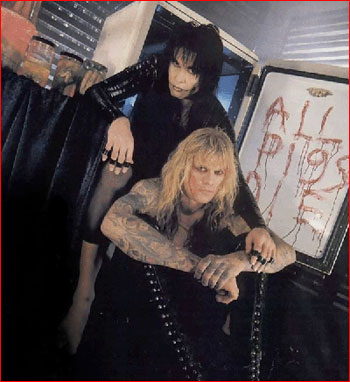 Au début de chaque show, Blackie devait allumer avec une torche un écriteau sur lequel était écrit W.A.S.P. en lettres de métal. Le problème était que cet écriteau n’était jamais placé à la même hauteur, et, lors d’un concert, comme il était placé trop bas, Blackie s’est enflammé les cheveux en y mettant le feu. Et tous les spectateurs, croyant à un nouvel effet prévu, criaient : « Yeah, brûle, Blackie » ! Lors d’un autre concert au Troubadour, le prix d’entrée était divisé par deux pour tous ceux qui apportaient une pinte de sang à l’entrée ! Lors d’un concert à Helinski (Finlande), alors que Blackie lançait ses morceaux de viande, un spectateur s’est mis à les renvoyer sur le groupe. Tous les autres suivirent et on assista à une bataille rangée de morceaux de viande entre le groupe et les spectateurs ! A la fin d’un concert, juste avant le rappel pour Animal, Chris a été à moitié assommé par un morceau de viande envoyé par un spectateur, et, après avoir été réveillé par son roadie, a joué Animal complètement faux Le groupe a été interdit de séjour pendant 2 ans en Suède à cause de leur show. Un jour, alors qu’ils savaient que le NOW (National Organisation of Woman, l’équivalent de notre MLF) allait manifester contre eux, ils apparurent au concert avec le fond de leurs pantalons découpé ! Ils garderont d’ailleurs cette « tenue » par la suite. |